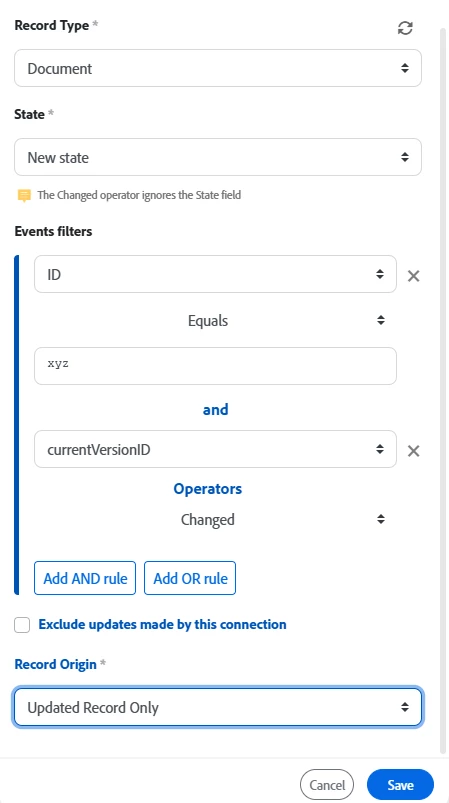 How to trigger a scenario when a document version is updated