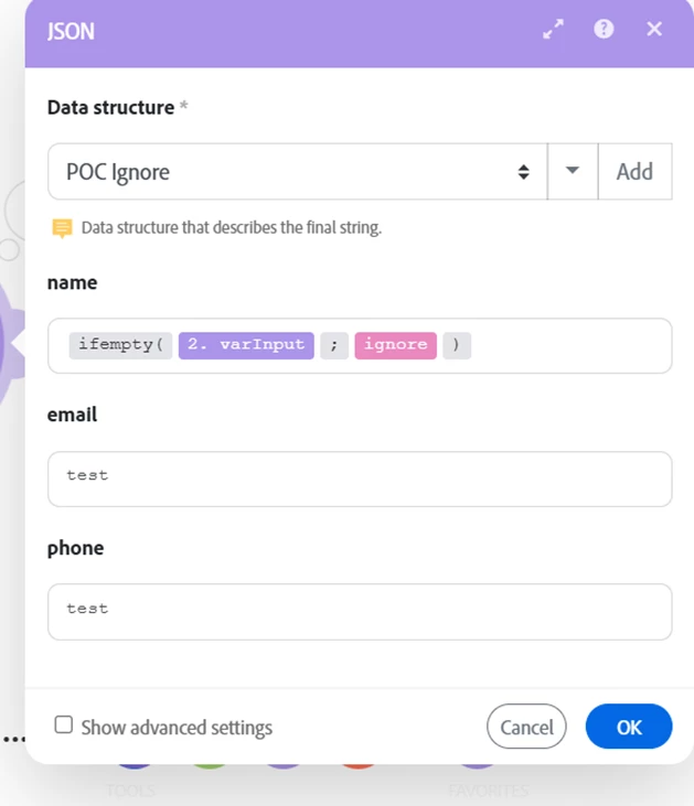 Is it possible to make JSON Modules in Adobe Fusion ignore null values?