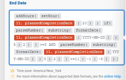 The planned completion date is set to 5 pm EST on all our tasks so my expectation would be that they all come over to Fusion with the T22:00:00.000Z timestamp, which is 10 pm GMT.