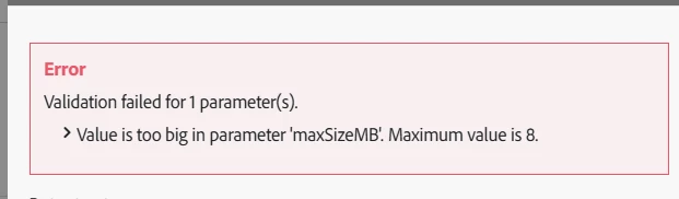 Maximum data store size (8192 KiB) will be exceeded after this operation
