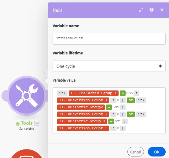 And I am using these meta data in module # 59 (set variable) with IF statements