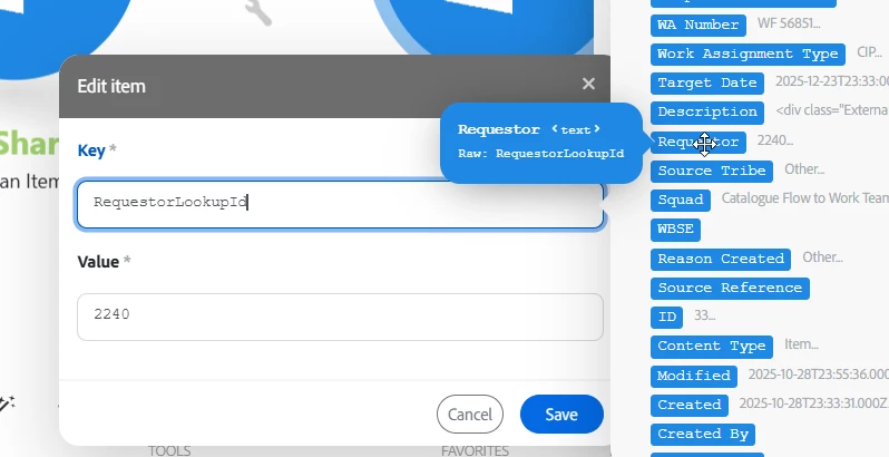 I have created a Fusion scenario to add a new item to a list in sharepoint. All fields populate as expected except Requestor which is a Person or Group Type. If I subsequently edit the item directly in the sharepoint list, I can enter the same name I pass from Fusion, the name is found and after I select it the field is populated.
