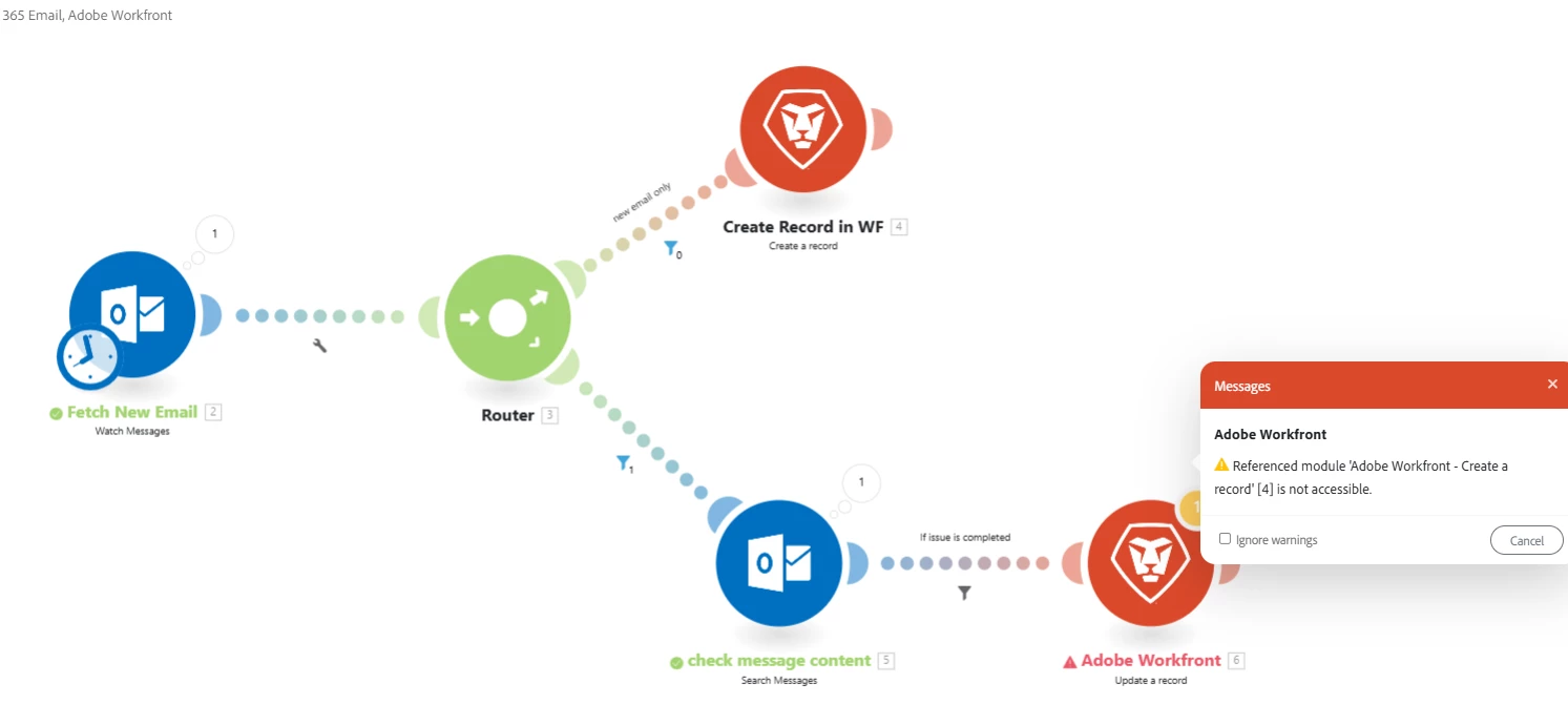 1 email to case: If new message received by email it automatically creates an issue to WF (scenario working)
