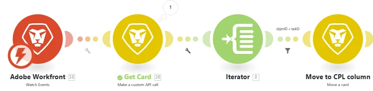 The body is filled with this query and based on an inspect I used on the Get Board module. I have added the portion below to it to reduce operations for searching in a scenario. There is a lot of irrelevant information in the call but I am too lazy to remove it. I start the scenario using a instant webhook with task status change and assignedToID = Desired user, I get the card information in the getBoard() query, then use iterator to make an array and filter via card obj id = taskID, then move the card to the columnID that I got in the getBoard() query.