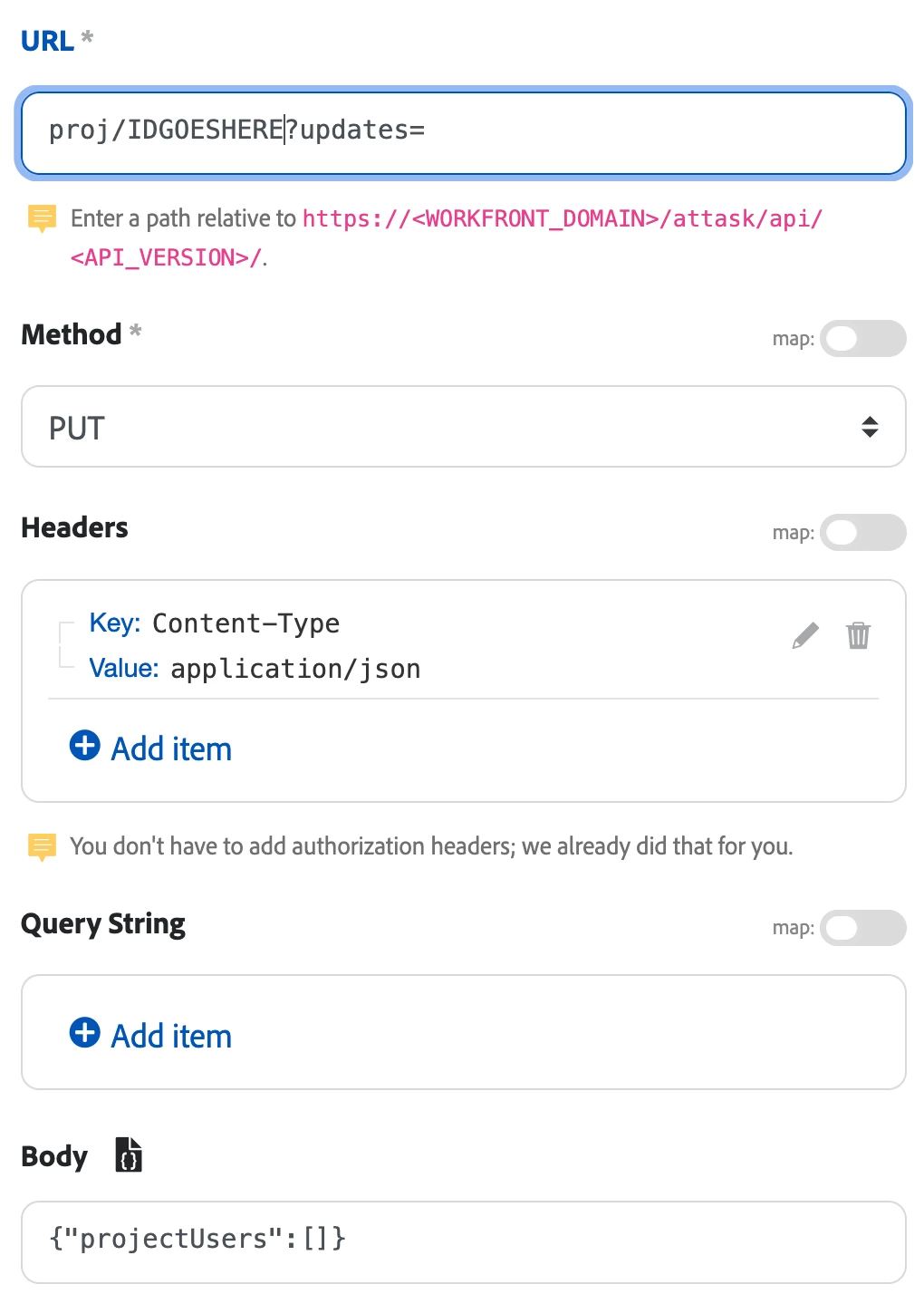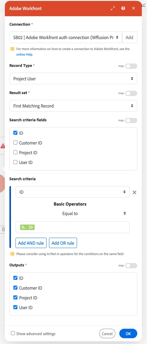 Workfront Fusion Search module Record Type: Project User