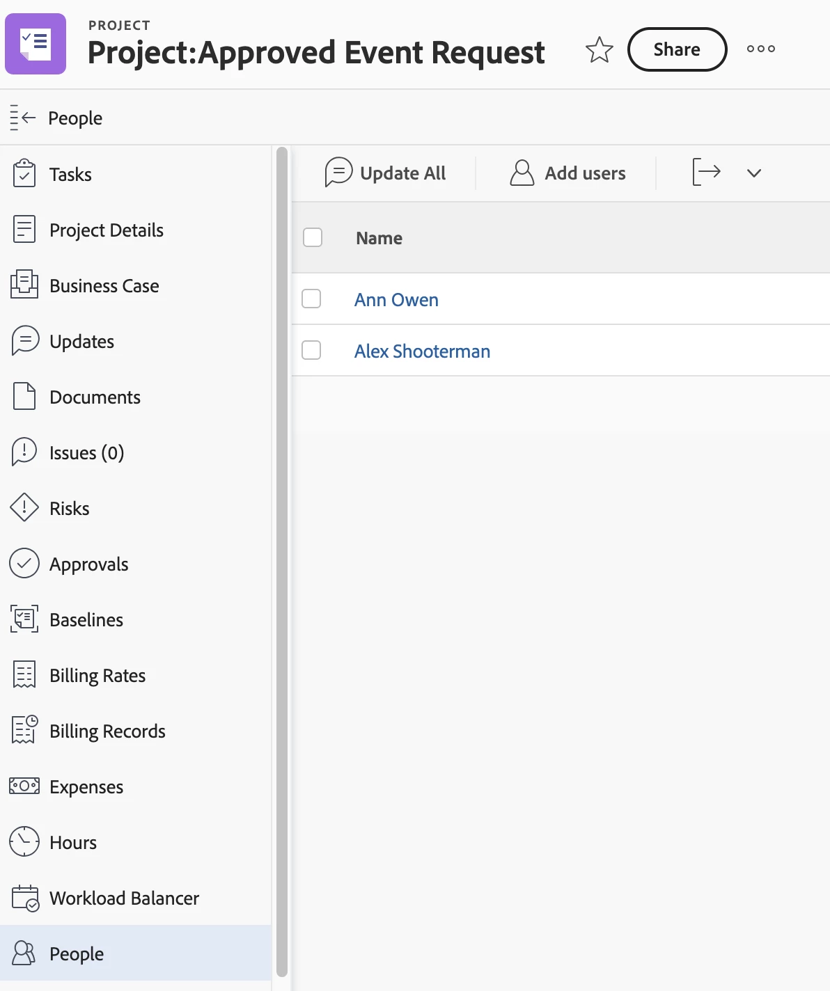 I'm looking at the object Project User, which I believe is an array of the People on a Project.