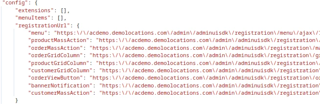 i want to add app menu at admin commerce and i am fetching the app menu through adobe app builder , i followed the documention of admin-ui -sdk but after checking test connection it gives me empty menuitems in response