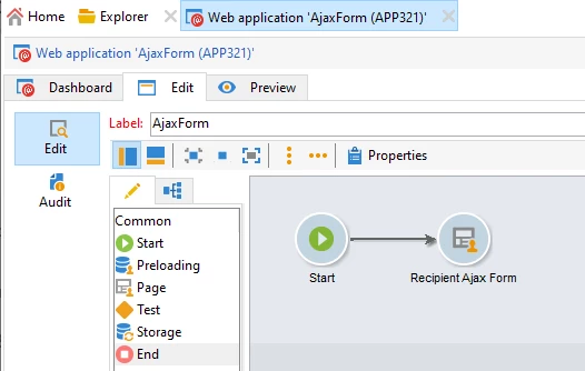 Copy the code attached in the recipientAjaxForm.docx and paste it into a page activity webapp such as below.