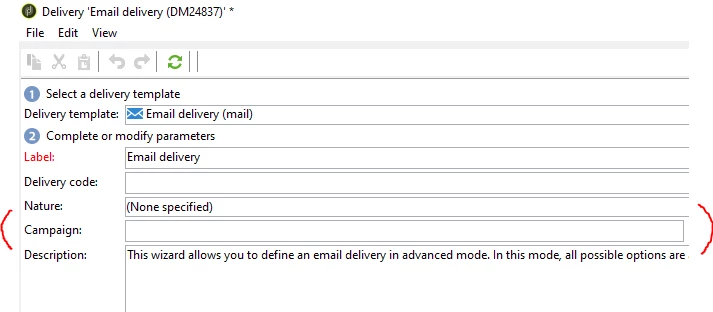 These are the attributes added at the Extended Delivery schema, so for example, under "Nature" will be "Campaign", with a field text to write whatever I want. Any idea?