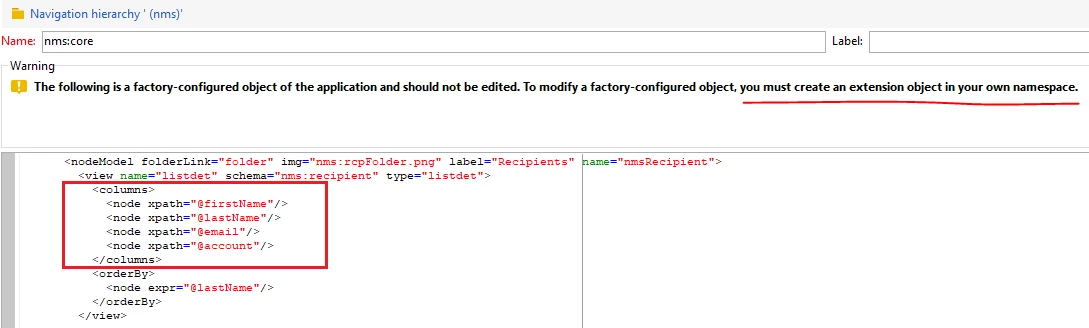 If you're asking about adding the column name in list view,- Extend the nms:core navigation hierarchy and add the attribute which you need to display in default configuration list,