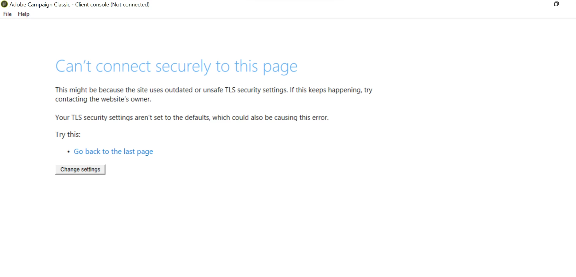 I am facing an issue while using Adobe Campaign client console. Please help to resolve this. Thanks!