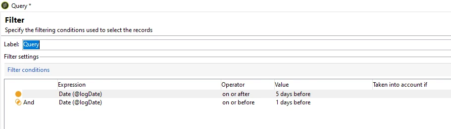 If you are trying to extract data in a workflow, then you can create query condition as below,