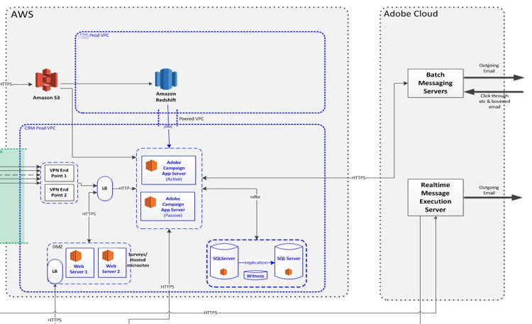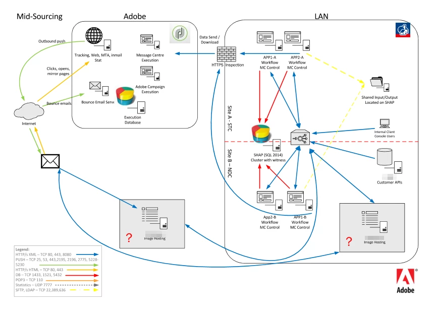 Here is an example of hybrid (deliveries by Adobe, MKT on premise)