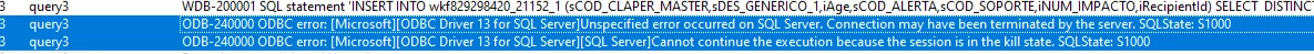 Adobe Campaign WF Error - ODBC Driver 13 for SQL Server - SQLState:08501