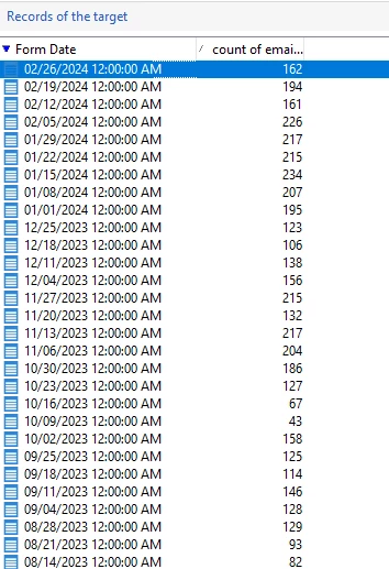 If i have a technical workflow that captures form responses back in time. What is the best way to create a running total that sums only up through the week listed in column A? So, for the week of 02/19 i would only want the total to include up until that week and then any responses there after would represent the growth during that week.
