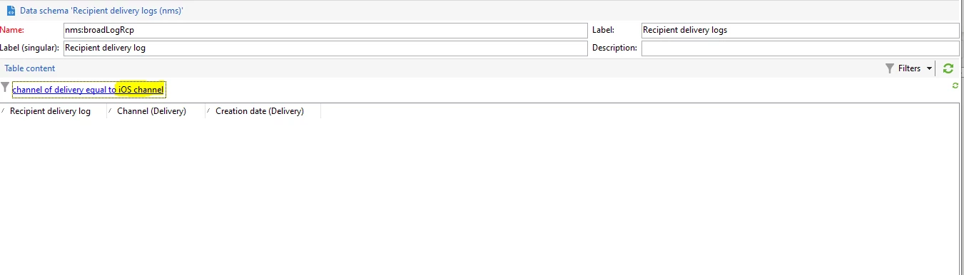 broadLogRcp empty for channel equal to "iOS channel"?
