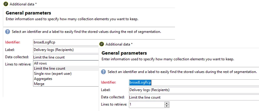 Not sure you can modify it via Input form or in other way, but this 'Lines to retrieve' and 'Data collected' dropdown are from "conditionLink" element on xtk:queryDef schema.