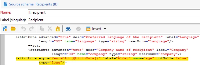 <attribute desc="Age in years" expr="YearsOld([@birthDate])" label="Age" name="age"