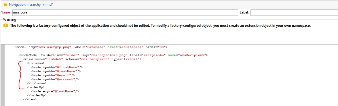 I would like to change these predefined columns when displaying the Recipient-folder.