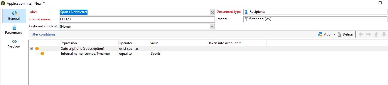 Eg: If recipient named: PR and ABC has subscribed to a newsletter named 'Sports' i have to create a pre defined filter so that i can filter them in the recipient folder according to their subscription