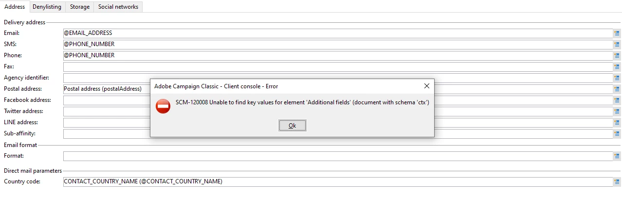 We are trying to configure the Target Mapping for Custom Schema and while configuring for Direct Mail, we are getting the error below: