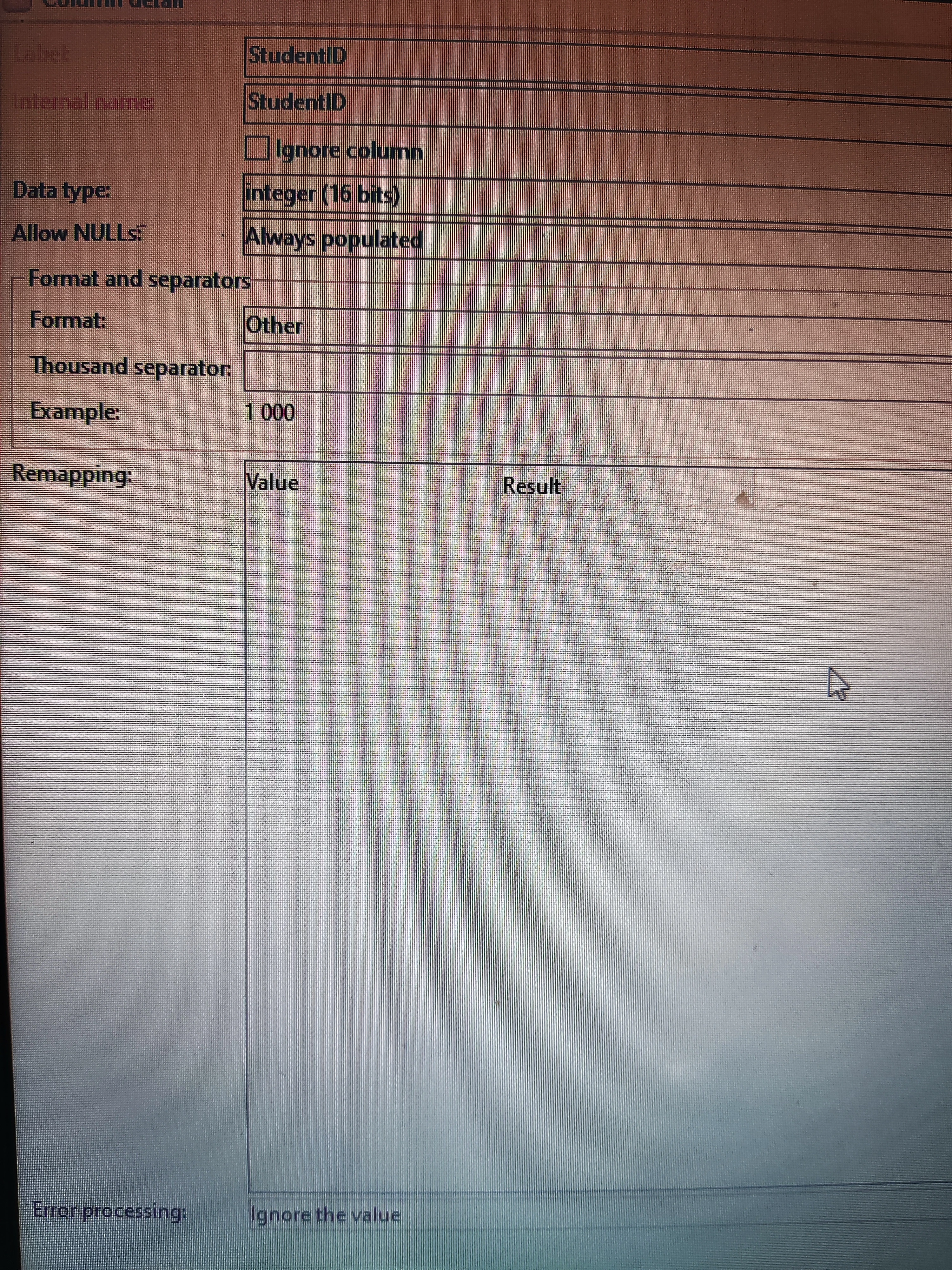 I am using the Data Loading activity in Adobe Campaign Classic v8, which includes a column for studentid. Upon analyzing the data, I noticed that the studentid column contains blank values.