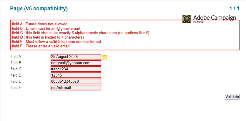 Here are the fields that I am looking to validate: