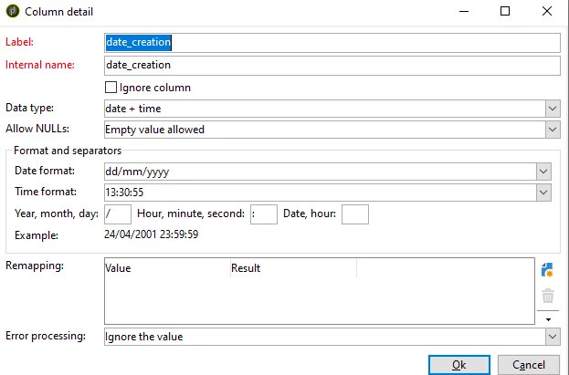 Hi, I have a file.csv.gz that I need to read. It has the fields date_creation and date_modify with valus if I open it in excel, but when importing in Campaign, campaing gives error satying those fields are null. Why?