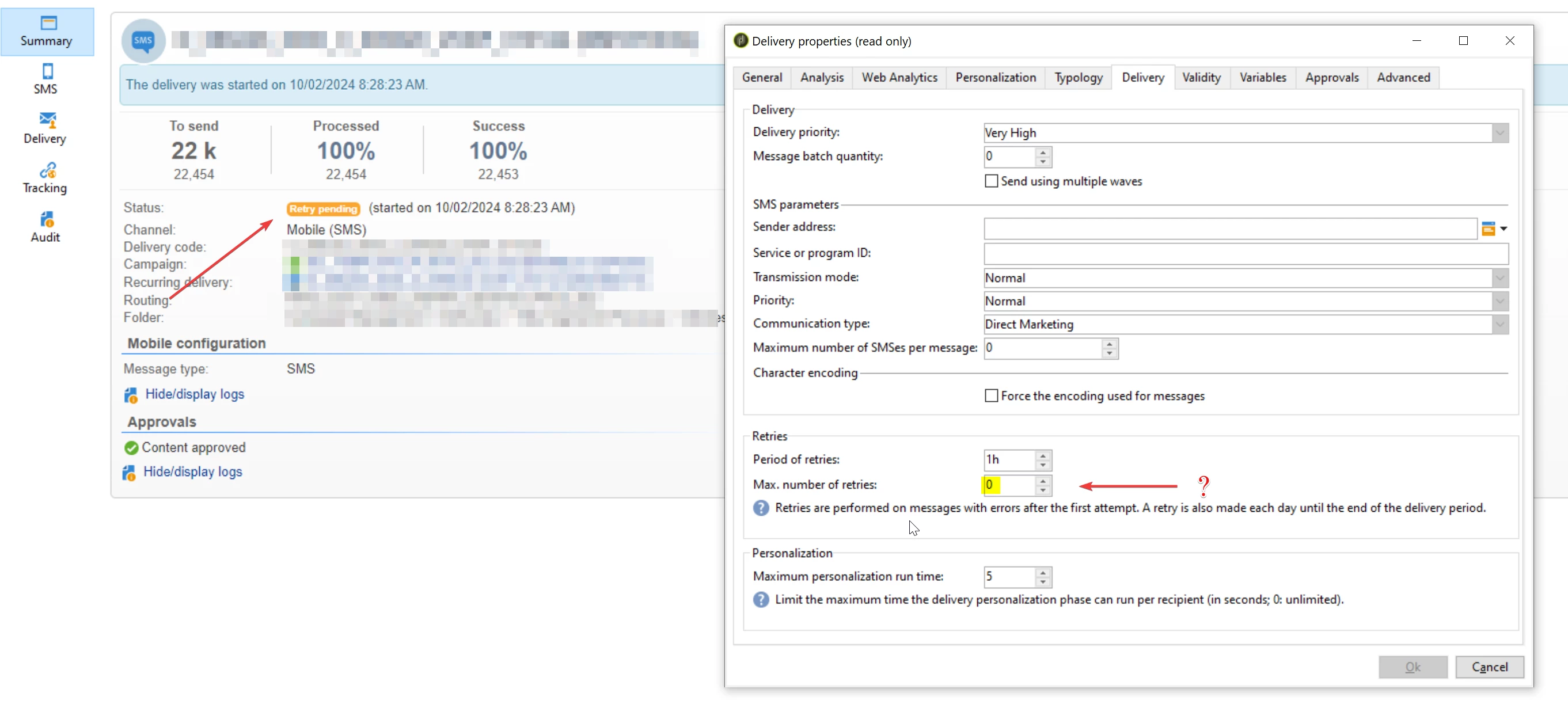 May someone tell me why the delivery is still showing "Retry pending"?