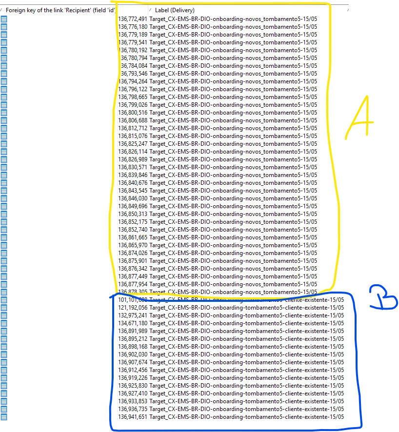 Delivery B = 30 records,