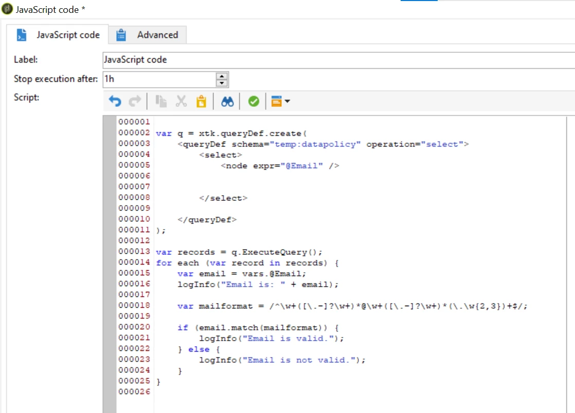 This is the code I used to identify invalid email addresses from the data loading activity:
