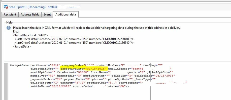 The seed I'm using is set-up with effectiveDate in the 'Additional Fields' tab: