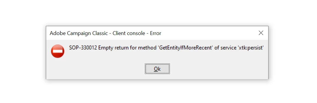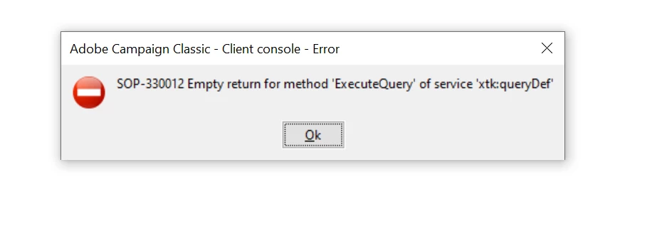 Solved: Error: empty return for method 'ExecuteQuery' xtk:... - Adobe Experience League Community - 300494