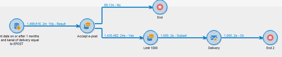 The final goal of the workflow is to send out an email to customers but I would like to test the amount of customers that go through the analysis phase in the delivery and see the amount in the workflow.