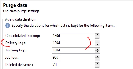 2) Ensure that the Database Cleanup workflow is running fully as that workflow is in charge of purging logs and old deliveries, etc. noted in step 1.