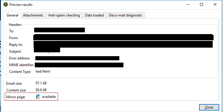The availability of mirror page here informs us whether the link to mirror page has been included somewhere in the delivery content or not. In case not, the message here will display "unavailable".