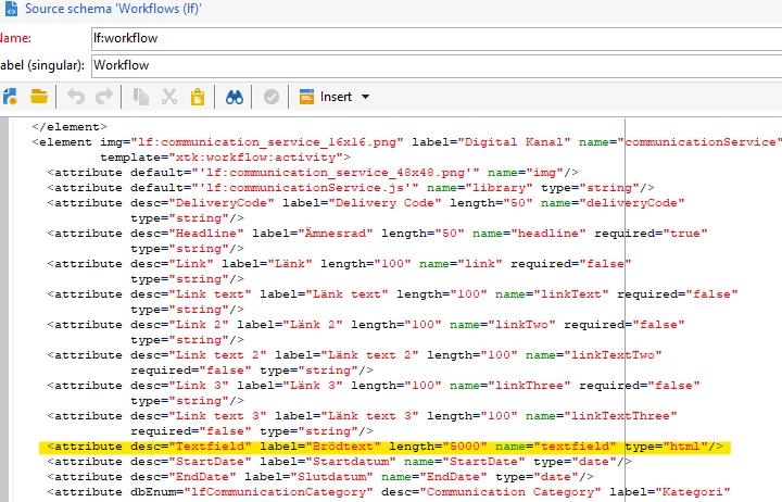 Hello, we have built a custom workflow node called "Digital Channel", which basically is a new custom channel that the user can add content and then send it to customers and it will end up on their "My pages" via an API. We are struggling abit with the rich text input field as we need to send it with html code to the API. When we are trying to get the data from the input field we only recieve a empty string in the javascript code: