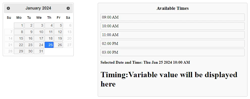 My approach is to retrieve the existing date and time values from the database, and then compare any new selections with them. If a match is found, the corresponding date and time should be disabled.