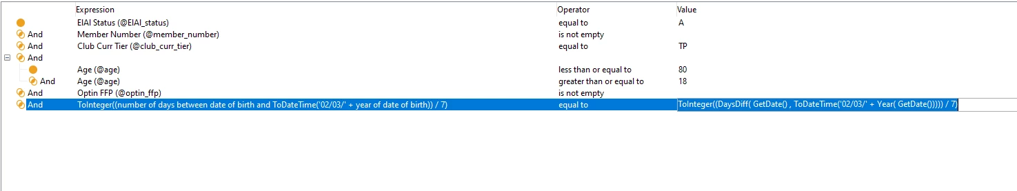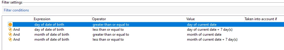 I see I can create an expression based on the Month of the date of birth, and based on the day of date of birth.