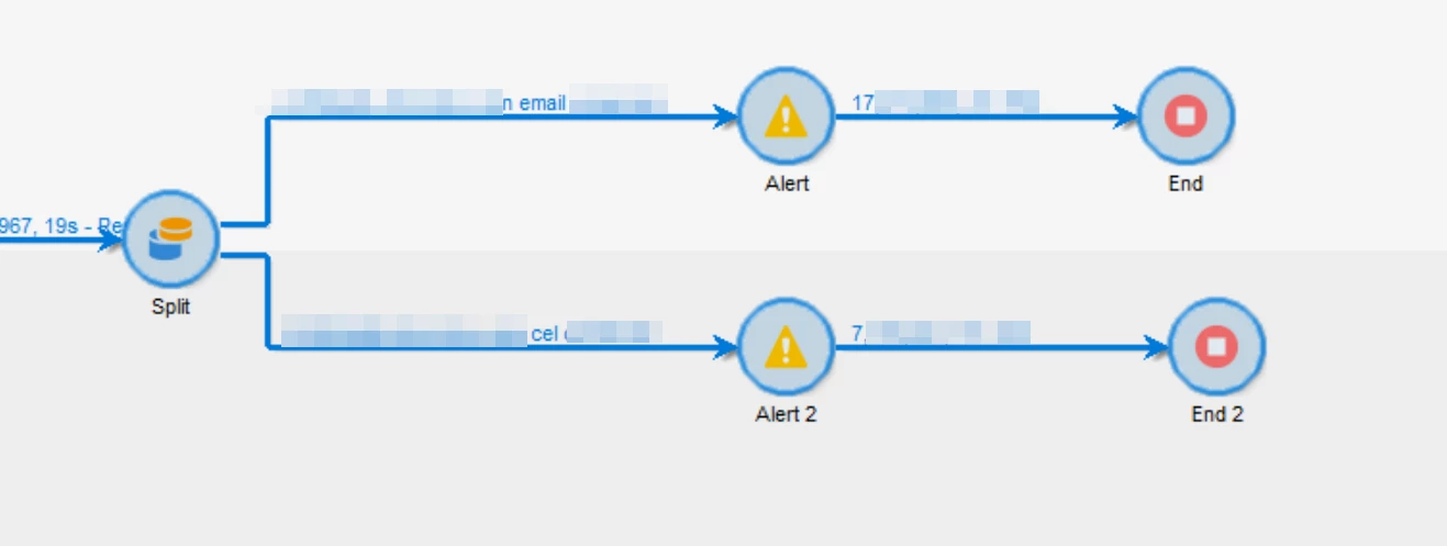Since those are 2 segments inside the split activty I get 2 outputs. I can send an alert for each output, but I need to send a single email containing both counts of Field A and Field B.