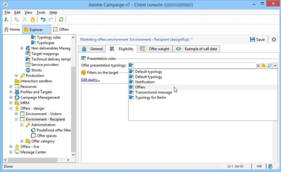 it shows applying the typology at the offer environment. However, when i go to the environment i do not see the eligibility setting available in the screen shot below. Does anyone know how to apply the offer typology in ACC V7?