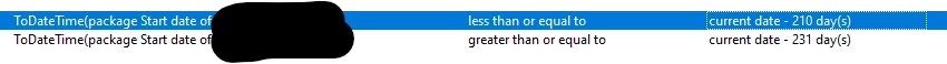 In the database there is a packaged date attribute column that is in the string format. we need to fetch list of rows between from - 230 to - 210 days (for example: from 29-02-2024 to 21-03-2024) to current date. we have a solution but in our database millions of data. It is taking around 3 mints to retrieve the data from the query activity, Is there any possibilities to reduce the query execution time?