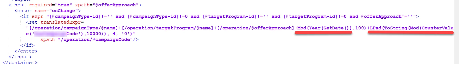 1) <input required="true" xpath="@EMP_ID"/> // EMP_ID = es_name; es is countryCode which need to set in other input field