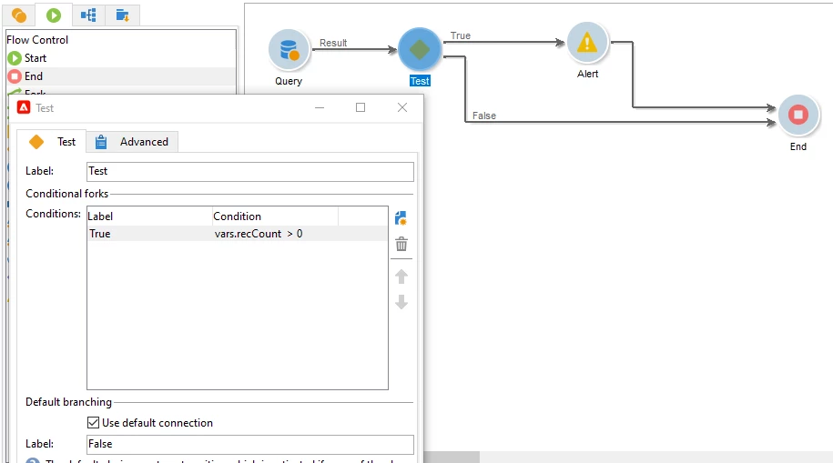 I want to add 'A' node to judge whether there's failed count from previous node.