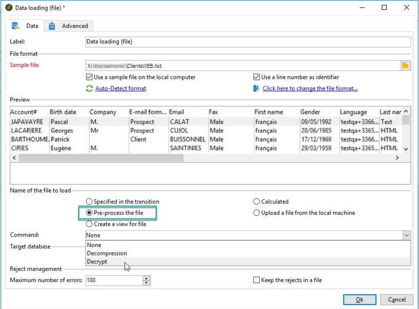 fileImport3 WKF-560234 Allowing arbitrary command for pre-processing is a security concern, disable security option ('XtkSecurity_Disable_Preproc') to force the use of a predefined list of commands.
