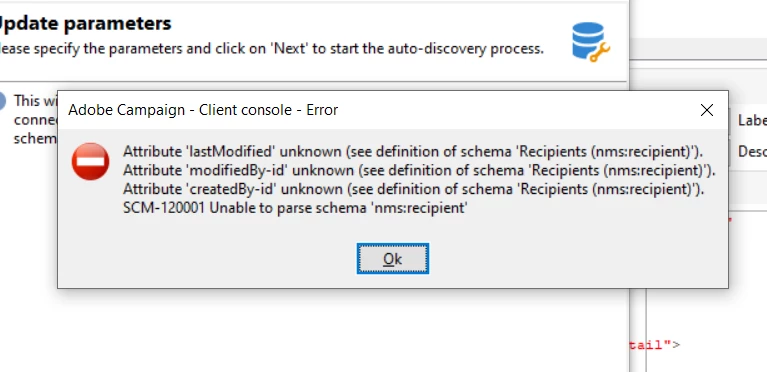 Did you add this or remove it recently? That being said, you need to check in your recipient schema if these fields are there fix your issue.