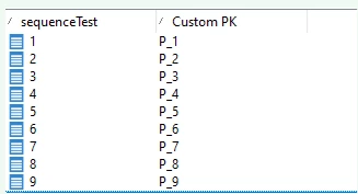 INSERT INTO CusSequenceTest (isequenceTest ) VALUES (0); --(defining the first 0 value for the primary key, hence the records now will have sequence as 1,2,3... )
