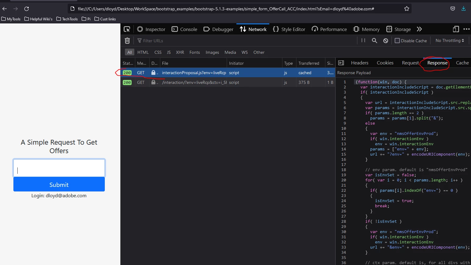 I've built a web page to retrieve offers from ACC. I can get a 200 response but no change is happening to my HTML. In the network response its coming back with what I think is an ACC JS function to run but it doesn't seem to be updating my page. Any thoughts?