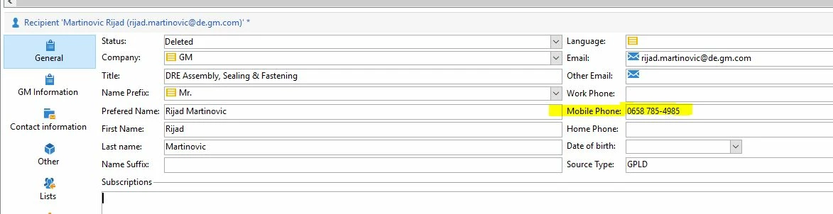 Incorrect prefix is getting added to mobile number. Adobe Campaign recipient schema is adding 0 automatically in mobile number field. I added my number as 4077659928 but the moment I went to other field or save on recipient it changed the formatting and added 0 in front. In Lower env , I see it adds +1 which is correct .....