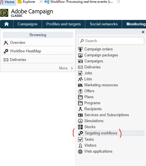 Hence I was curious to find out - If there a quick activity (like workflow, delivery etc) search available in the home screen UI dashboard of adobe campaign classic as compared to Standard version?